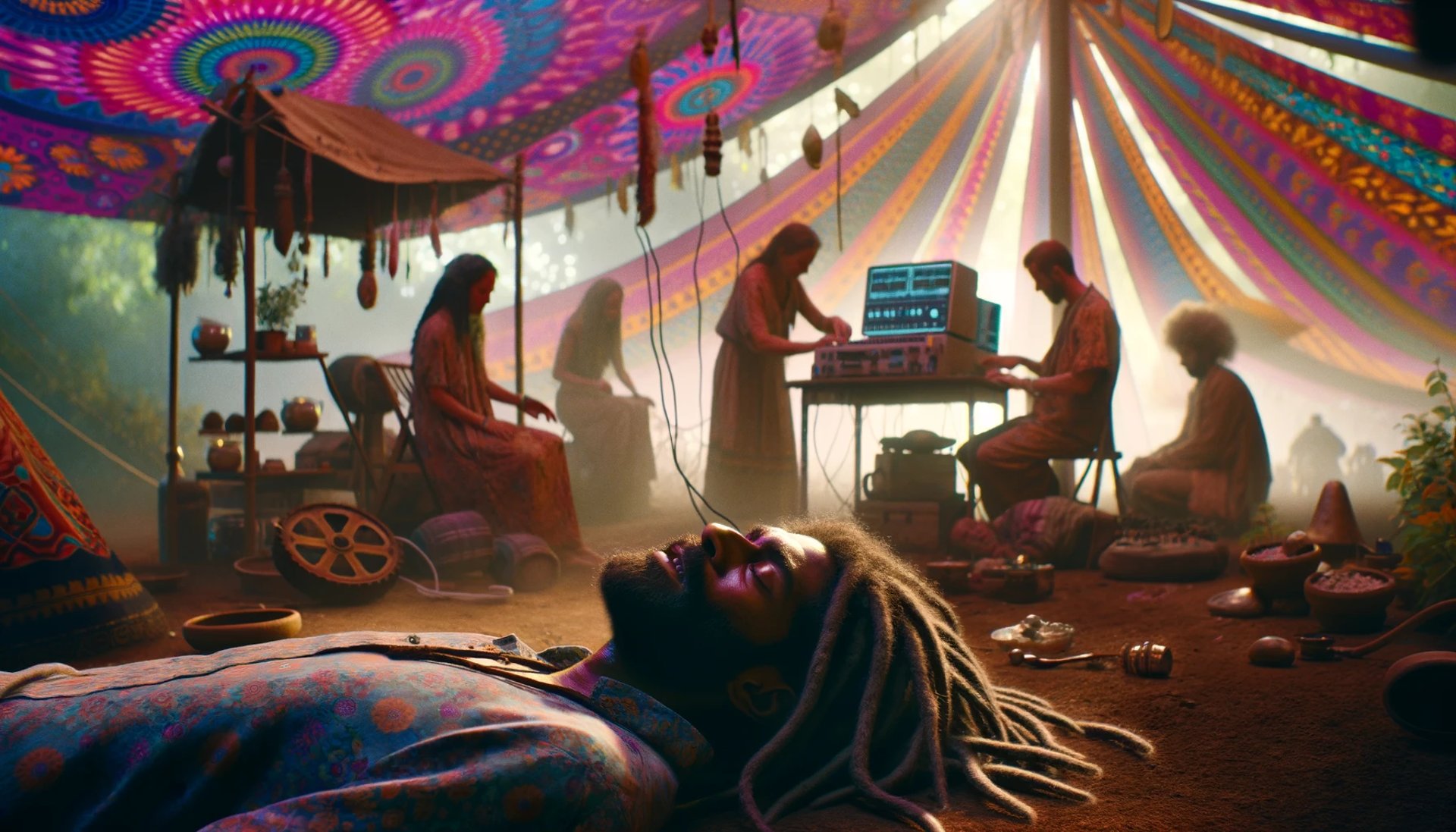 Their favourite DJ had been saved but he was barely alive. They smuggled him out of the "safe zone" to the safety of the wastelands. His crew gathered healers and hackers who treated him with home grown herbal remedies and human written open source code.