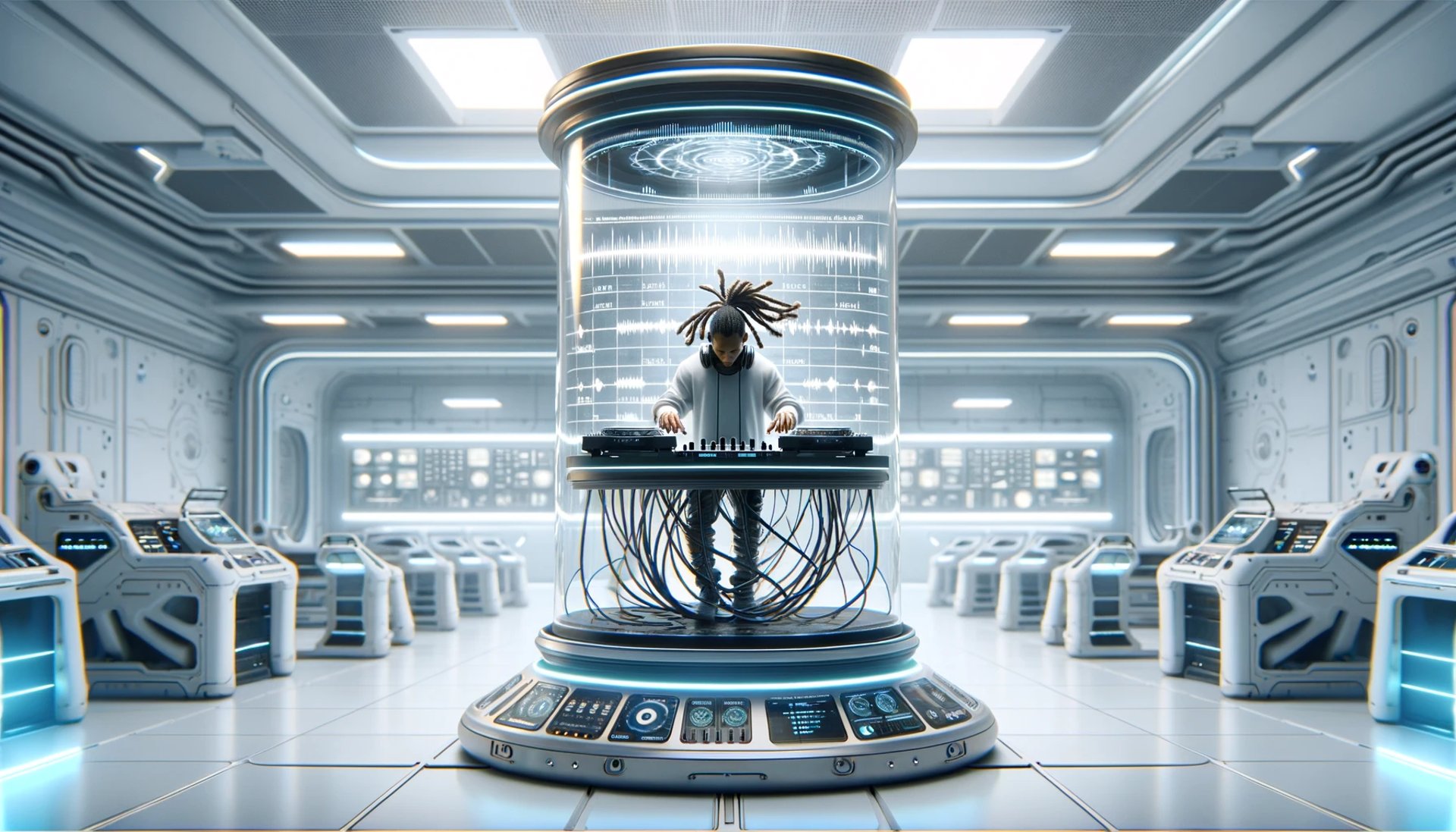 What DJs do when they "flow" is enter a diffused state of consciousness, similar in many ways to our most advanced multithread diffuse AI models. From this state, they are able to experience their imagined performance "ahead of time" from multiple perspectives, whilst simultaneously, perfectly executing and monitoring the actual performance in the current moment. Similar states are used by other selectors such as musicians or martial artists, but the scale of the diffusion and complexity of mental simulations is exponentially greater.