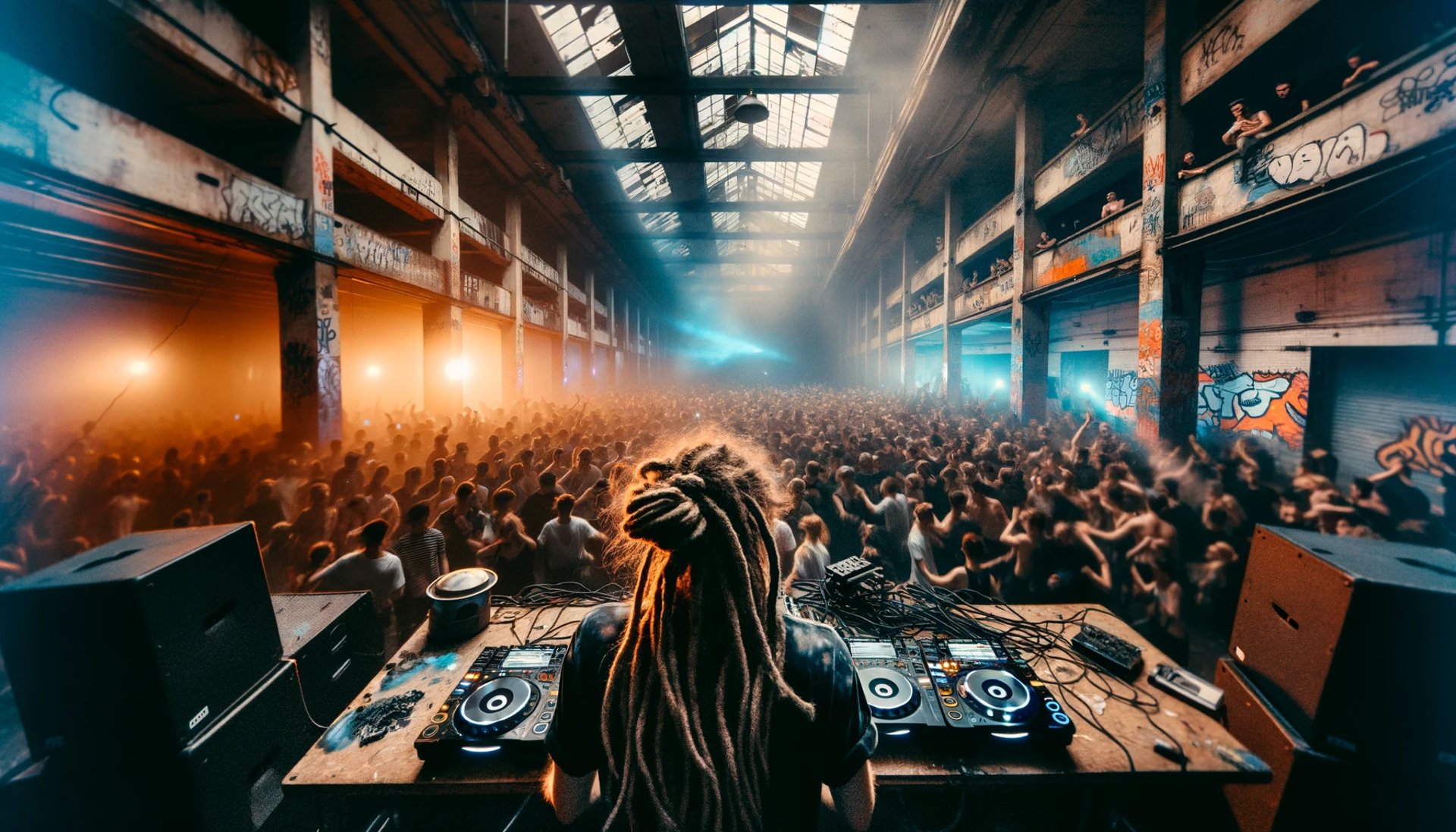 "Well, as you say, we have always used music and art to influence people. Individual songs and artists are powerful, but we struggle to guarantee complete cohesion. Especially with large groups of nonconformists" he mused. Their gaze shifted to a screen, displaying a derelict warehouse transformed by the raw energy of an illegal rave full of unchipped "mutes". In its midst, a DJ commanded the decks, his trigger fingers, mirrored by the ecstatic crowd.